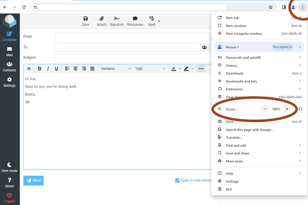 b. Exit the draft email and decrease the zoom again. Repeat until the style bar shows the full list of options.