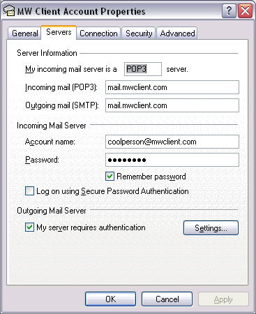 Incoming POP3 Server Address: mail.mwclient.com OR pop.mwclient.com